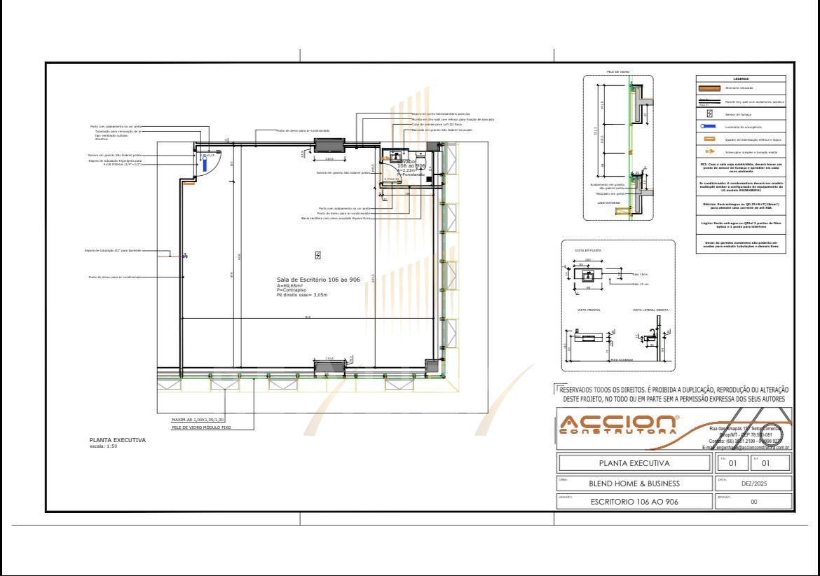 Esta Sala Comercial localizada no 7° pavimento com 174,20m² total com 77,65m² de area privativa e 12,50m² de area de garagem, area comum 84,05m².